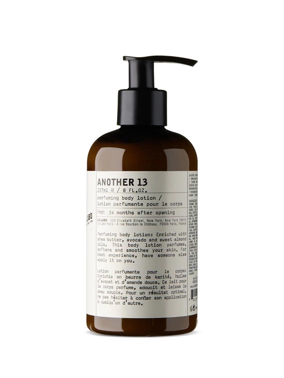 - Sữa Dưỡng Thể Hương Nước Hoa Le Labo Another 13 237ml là một cực phẩm mang hương tinh khiết chất kem dưỡng thể mỏng, nhanh thấm sẽ không để lại cảm giác nhờn rít cho bạn khi sử dụng. Giúp cấp ẩm và nuôi dưỡng làn da toàn thân ẩm mịn, tràn đầy sức sống.
