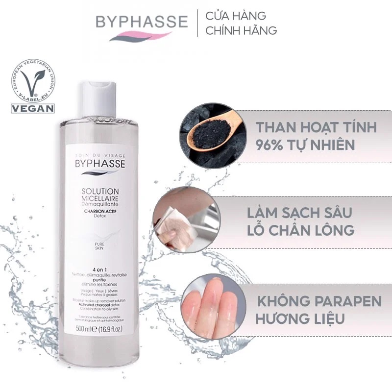 Ngoài ra, bảng thành phần gồm nhiều hoạt chất có lợi cho làn da giúp tăng cường sự mềm mại đồng thời tẩy tế bào chết dịu nhẹ, mang lại cảm giác sảng khoái cho bất cứ ai sử dụng nước tẩy trang Byphasse than hoạt tính.
