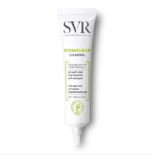 Gel chấm mụn giúp giảm mụn viêm, ngừa thâm SVR Sebiaclear Cicapeel 15ml là giải pháp cứu cánh cho làn da mụn. Gel giảm mụn hoạt động suốt 24 giờ nhằm làm khô và loại bỏ mụn đồng thời ngăn chặn việc hình thành các vết thâm. Chất gel trong suốt lưu giữ cả ngày dài.