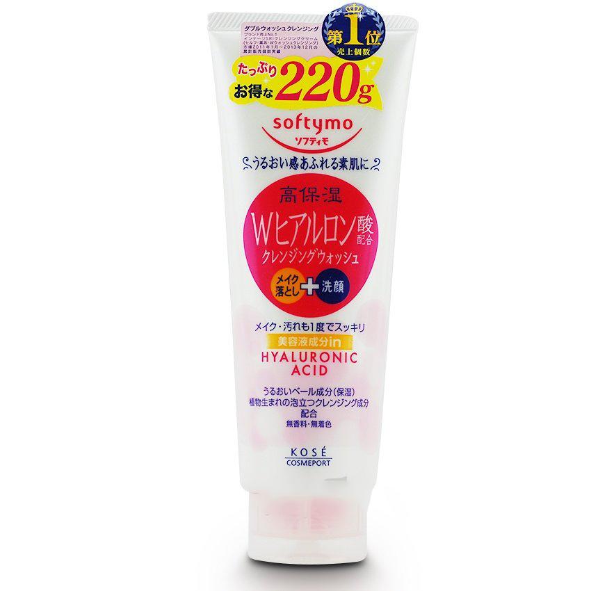 - Kose Softymo Hyaluronic Acid màu hồng: chứa các hạt li ti trong sữa rửa mặt thấm sâu vào trong các khe hở, loại bỏ mọi bụi bẩn giúp da dễ chịu sau mỗi lần sử dụng đồng thời bổ sung độ ẩm cho làn da khô.