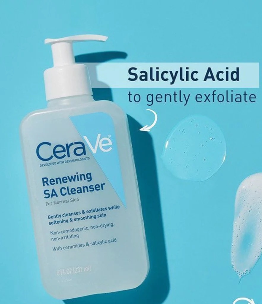 - Sửa Rửa Mặt Tẩy Tế Bào Chết Cerave Renewing SA Cleanser chứa Salicylic Axit làm sáng da, tẩy tế bào chết và giải độc để loại bỏ bụi bẩn và dầu đồng thời làm mềm và mịn da.Sữa rửa mặt Cerave Renewing SA Không giống như một số loại sữa rửa mặt tẩy tế bào chết khác, không chứa các hạt hoặc hạt thô và nhẹ nhàng trên da. Thích hợp với da dầu, da mụn nhẹ nhàng tẩy tế bào chết, lấy đi bụi bẩn, tàn dư của lớp make up mà không làm tổn hại đến lớp màng ẩm của da.