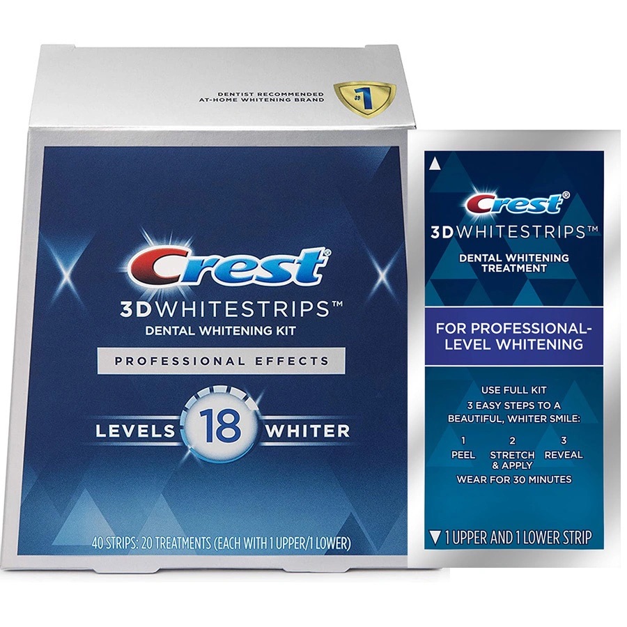 Làm trắng răng cấp độ chuyên nghiệp với Crest 3D Whitestrips Professional Effects. Miếng dán trắng răng Crest 3D Whitestrips Professional Effects giống như một cục tẩy cho răng của bạn.
