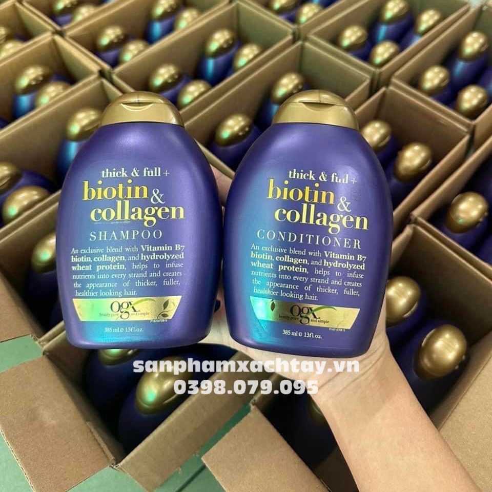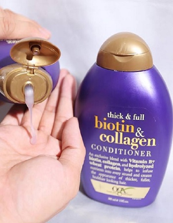 Hai thành phần collagen và biotin có trong OGX Beauty ngăn rụng tóc hiệu quả, kích thích mọc tóc, giúp dưỡng tóc chắc khỏe, mềm mượt, bồng bềnh