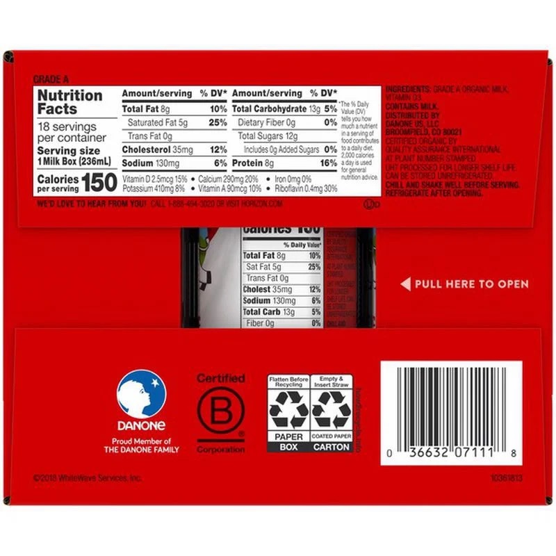 Sữa tươi Horizon Organic Whole Milk của Mỹ thùng 18 hộp x 236ml