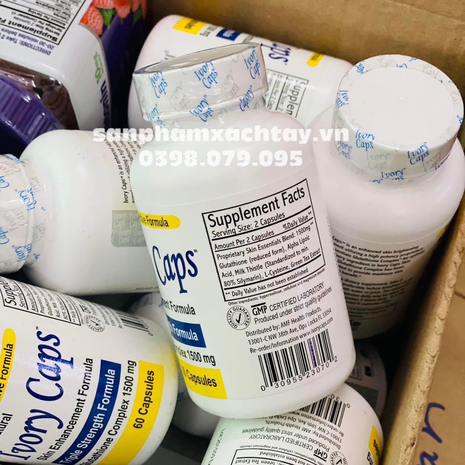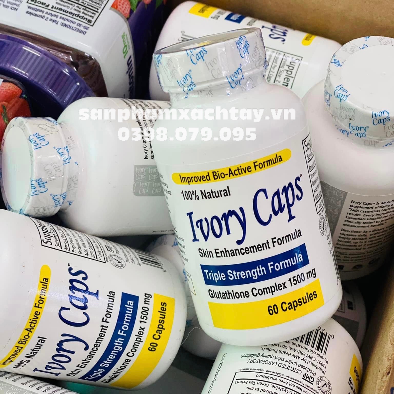 - Viên trắng da Ivory Caps Glutathione Complex 1500mg của Mỹ là công thức liều cao giúp tăng khả năng làm sáng da độc quyền “Skin Essentials Glutathione Complex” giúp đạt kết quả tối ưu và cực kỳ an toàn. Viên uống Ivory Caps cấp Gluthatione dần dần vào cơ thể, đồng thời theo đó, da bạn sẽ sáng và mịn màng hơn nhờ được cung cấp đầy đủ dưỡng chất. Ivory Caps sẽ mang lại cho bạn 1 làn da trắng hồng hoàn toàn khỏe mạnh.