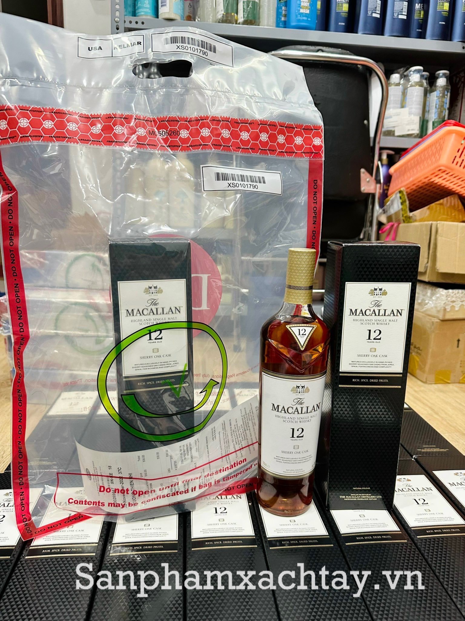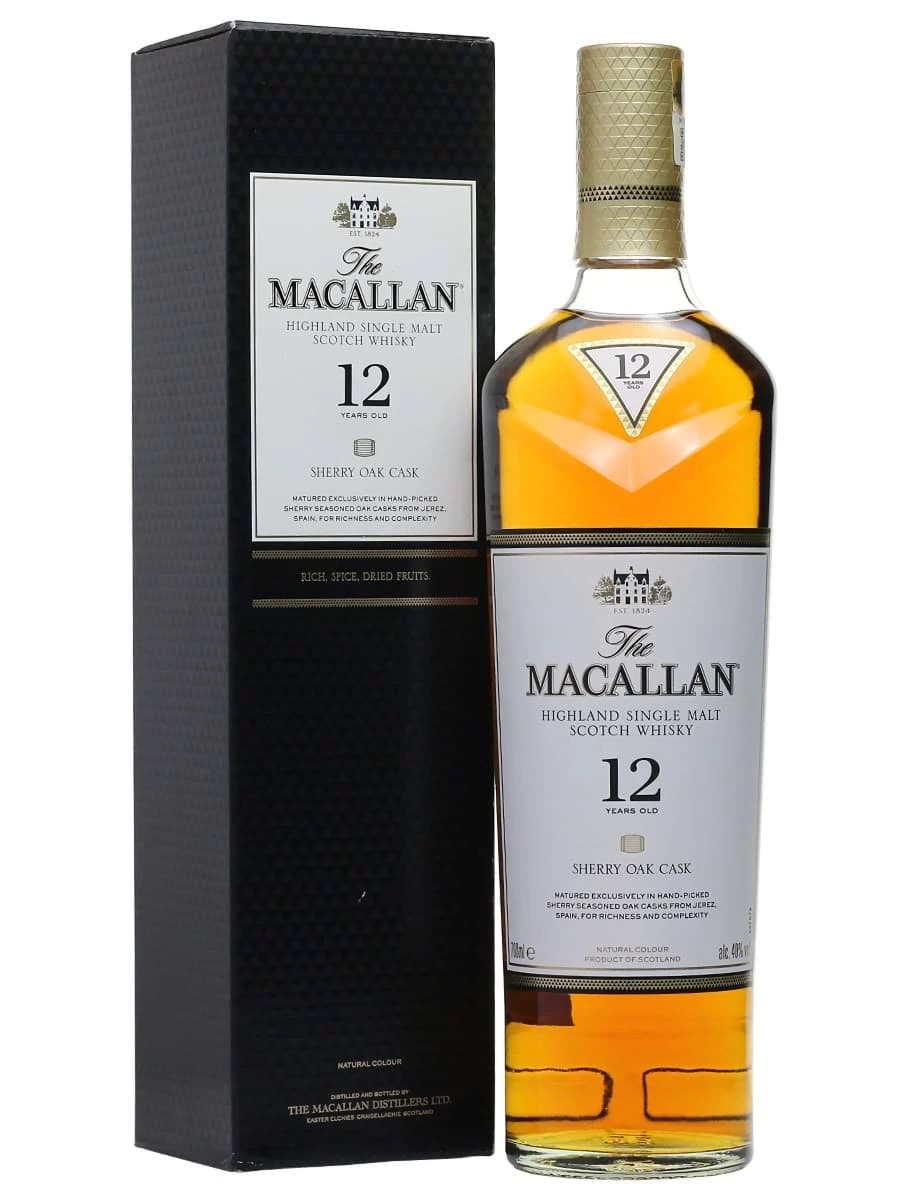 Rượu Macallan 12 năm Sherry Oak Cask, phiên bản phát hành năm 2018. Macallan 12 năm Sherry là dòng rượu ủ 100% trong thùng gỗ sồi sherry Oloroso từ Jerez, Tây Ban Nha.
