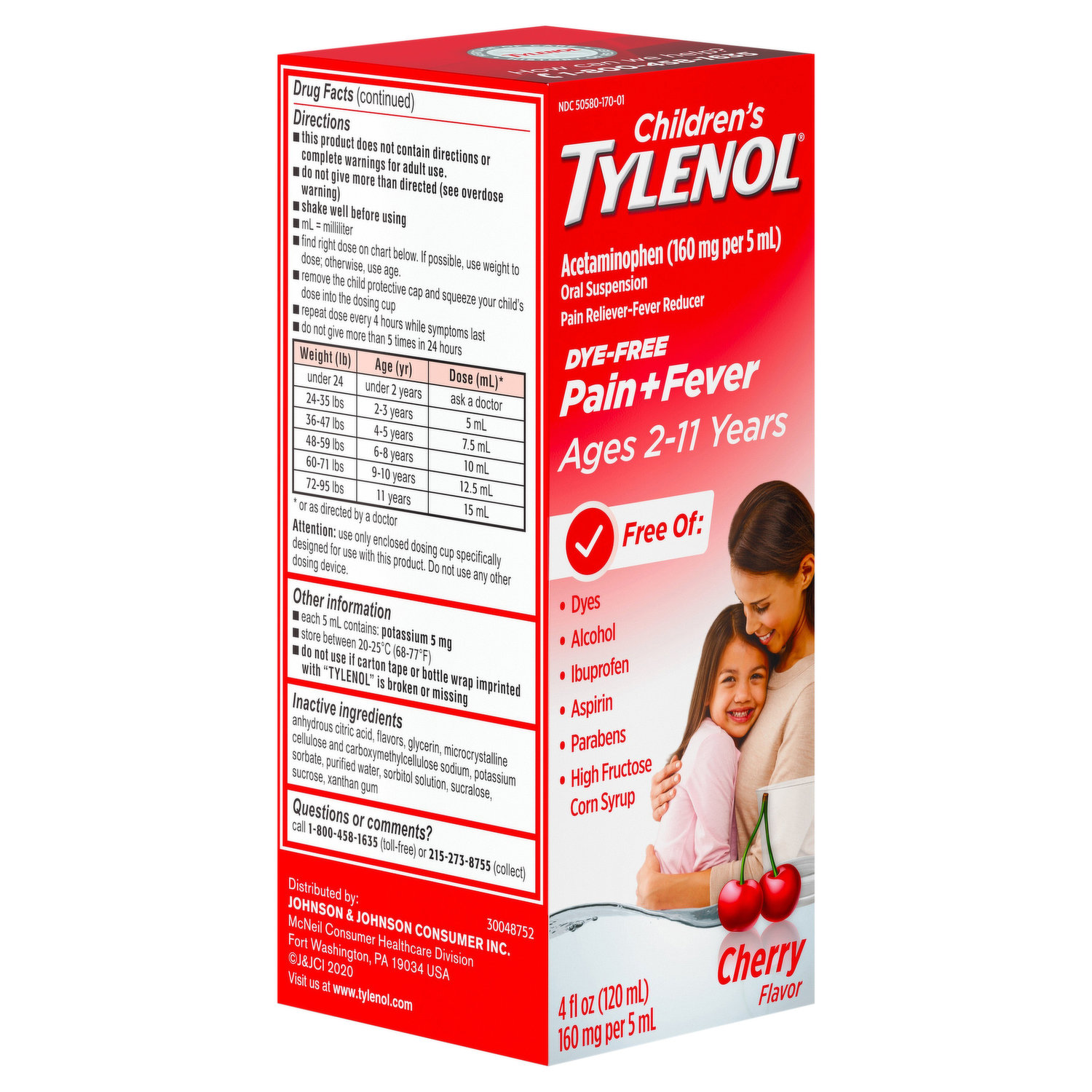 Siro Children’s Tylenol Pain + Fever chứa 160 miligam acetaminophen mỗi liều 5 ml. Sản phẩm này là để giảm cơn sốt và giảm cơn đau tạm thời cho những cơn đau nhức nhẹ do cảm lạnh thông thường, cúm, đau họng, đau đầu và đau răng. Siro Children’s Tylenol Pain+Fever hoạt động nhẹ nhàng trên dạ dày và dành cho trẻ em từ 2 tuổi đến 11 tuổi.