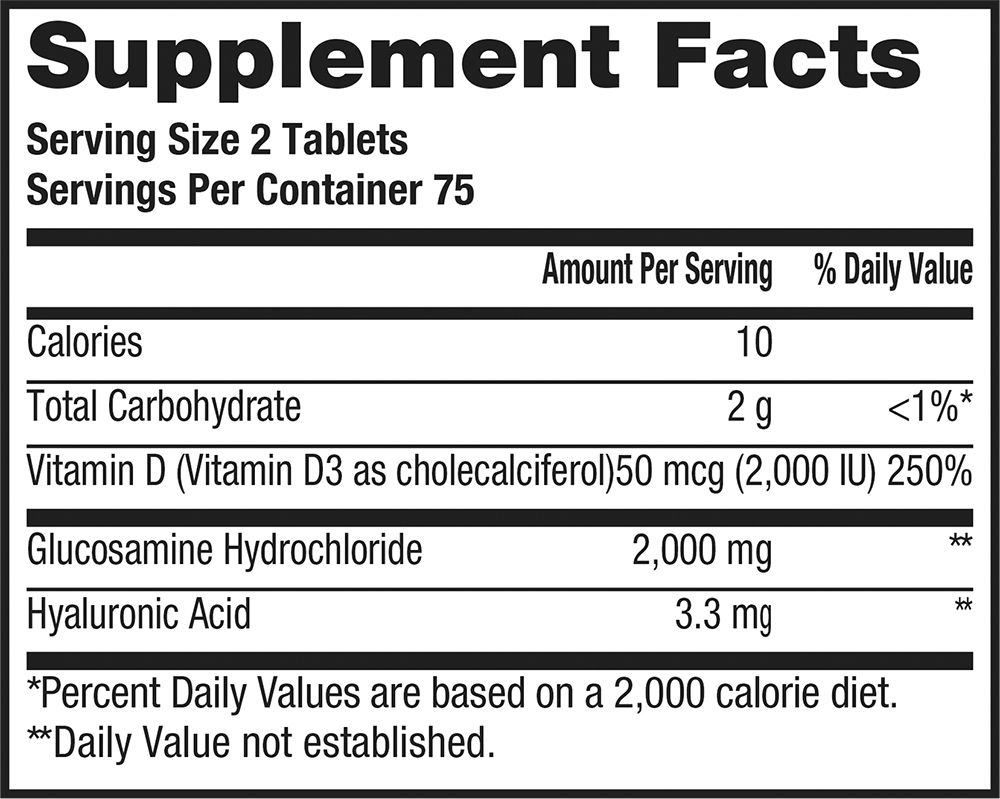 - Glucosamine Hydrochloride2.0g (2000 mg), Chinese Scullcap 0units. Black Catechu 0units. Maltodextrin 0units. Cellulose , Coating , (Polydextrose , Hydroxypropyl Methylcellulose , Caramel Color , Triacetin , Polyethylene Glycol , Gelatin, Titanium Dioxide, Dextrin , Dextrose , Soy Lecithin , Sodium Carboxymethylcellulose , Sodium Citrate),Stearic Acid , Hydroxypropyl Cellulose , Croscarmellose Sodium , Silicon Dioxide , Magnesium Stearate.