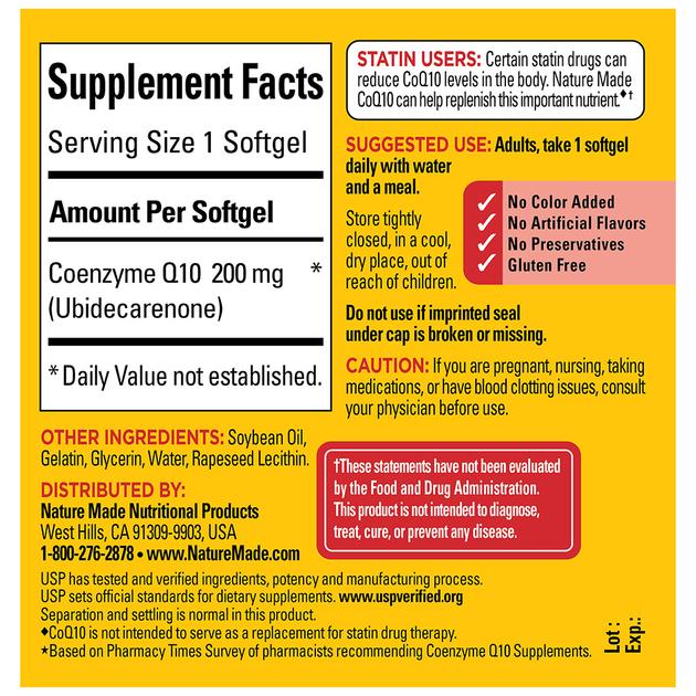 CoQ10 200 mg Nature Made là dược phẩm thiên nhiên đứng hàng đầu trong lĩnh vựa tim mạch được phổ biến và ưa chuộng trên thị trường, bán rất chạy tại hiệu thuốc và Store thực phẩm chức năng.