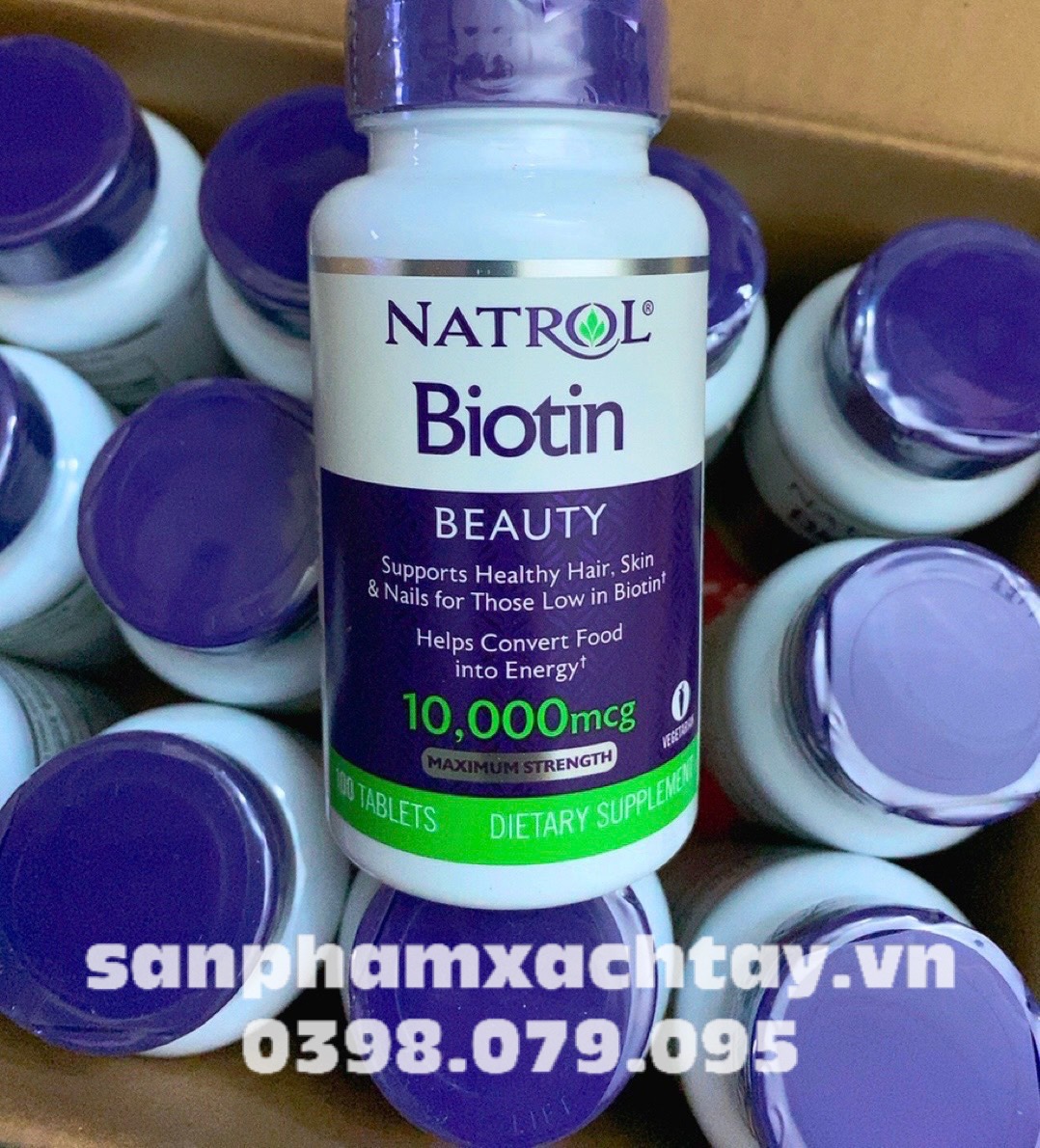 - Natrol Biotin 10.000 mcg không chứa: Sữa, trứng, cá, động vật có vỏ giáp xác, hạt cây, đậu phộng, lúa mì, đậu nành, men, màu hoặc hương vị nhân tạo, thêm đường hoặc chất bảo quản.
