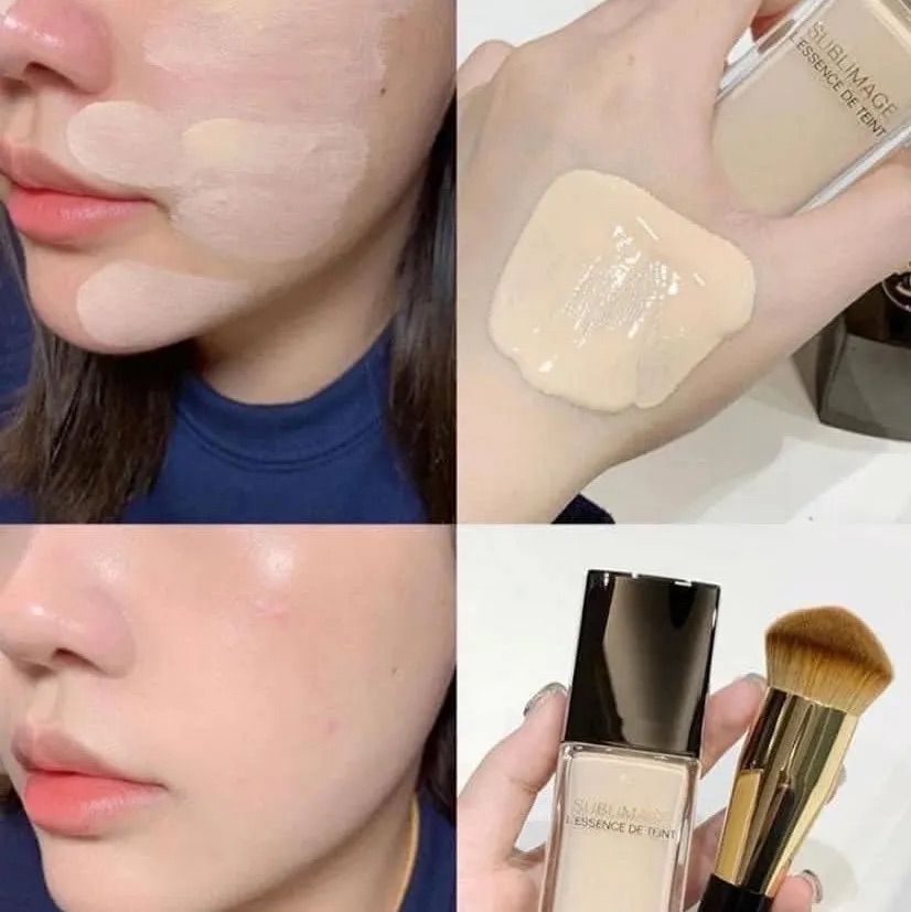 - Cho một lượng kem nền Sublimage L'essence De Teint vừa đủ ra mu bàn tay, lấy một lượng cỡ hạt ngọc trai bằng đầu cọ chuyên dụng.